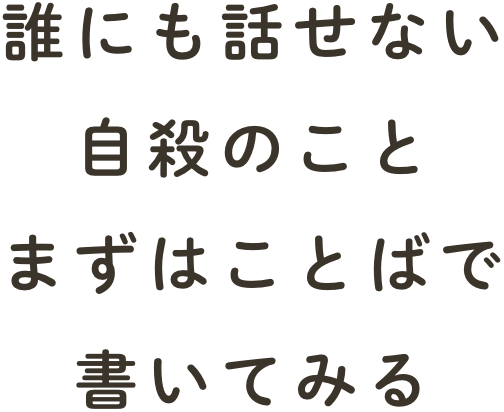 生きているのがつらい、死んでしまいたい、自死した人のことを思うと胸が苦しくなる...自殺について、思う気持ちはさまざまです。ここは、誰にも言えない、でも抱えたままでは苦しい、そんな思いをみんなで共有できる場所です。
