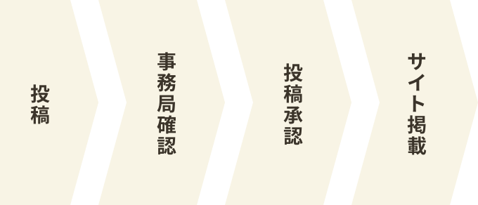 事務局で内容を確認し掲載となります。当サイトの規約に反する内容のものは掲載を見送る場合があります。
